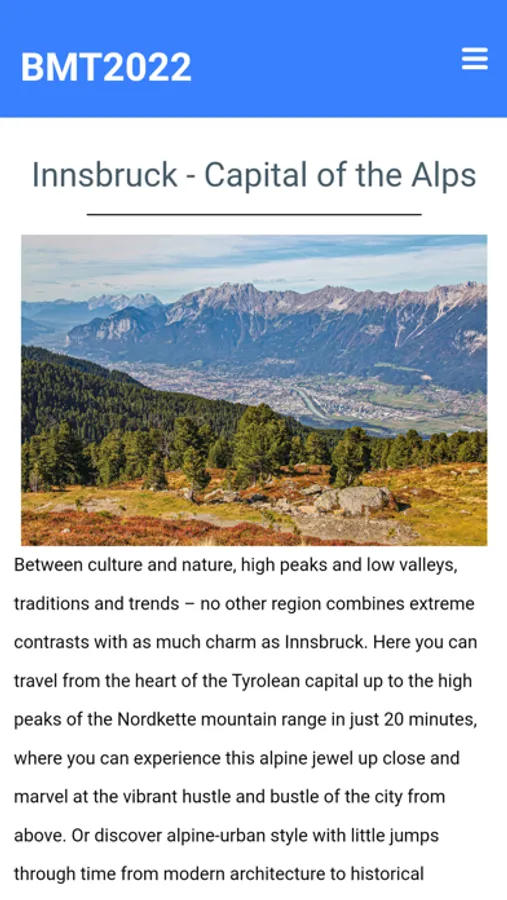 Your personal Assistant for the BMT2022 conference 28 Sep 2022 to 30 Sep 2022 in Innsbruck, Austria.