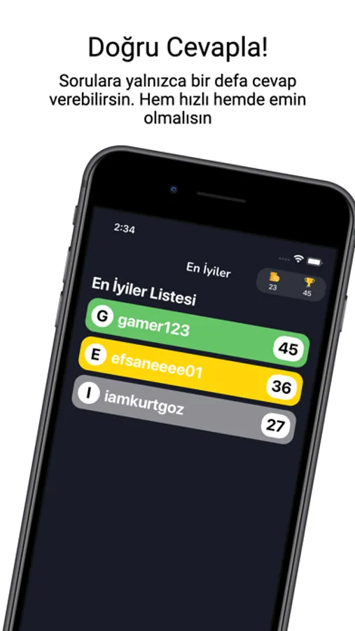 Soruların kolay-zor olması seni kandırmasın! En önemlisi hızlı olmak. Yeterince hızlı mısın? Sorulara yalnızca bir defa cevap verebilirsin. Hem hızlı hemde emin olmalısın. Soruların zorluk seviyesine göre puan kazanabilirsin. Unutma doğru cevap puan getirir yanlış cevap puan götürür.