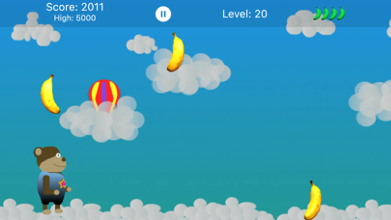 Bonobo is hungry and loves bananas. Help Bonobo catch as many bananas as possible falling off the banana truck. Be careful and do not miss to many bananas or your game will be over. Worry not young Bonobo, there are many artifacts along the way to help you in your adventure. Bonobos adventure goes through 50 levels and 10 different worlds.