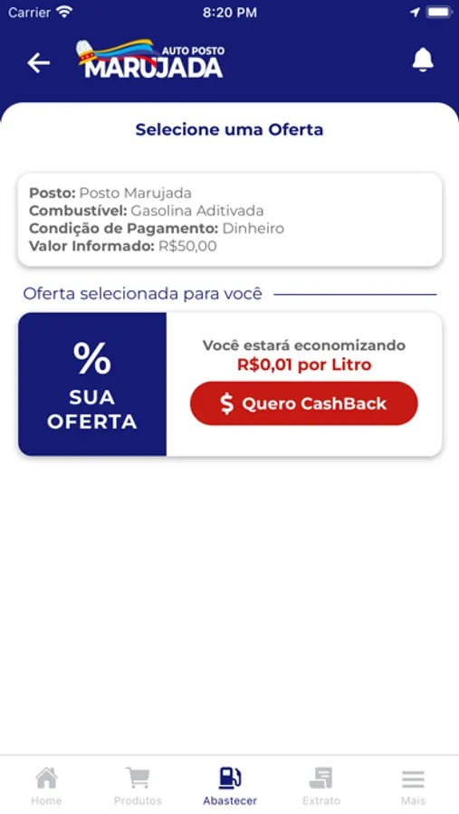 Criado pra você ter economia, praticidade e segurança. Conheça as melhores ofertas, informe quanto vai abastecer e veja quais as opções de descontos temos pra você.