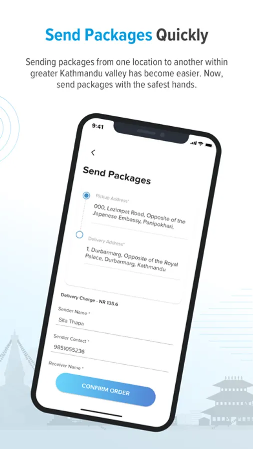 You can initiate our ‘send package’ service by selecting that service on our apps home page. You will be able to send any package under 15 kilograms to any destination within the Greater Kathmandu Valley.