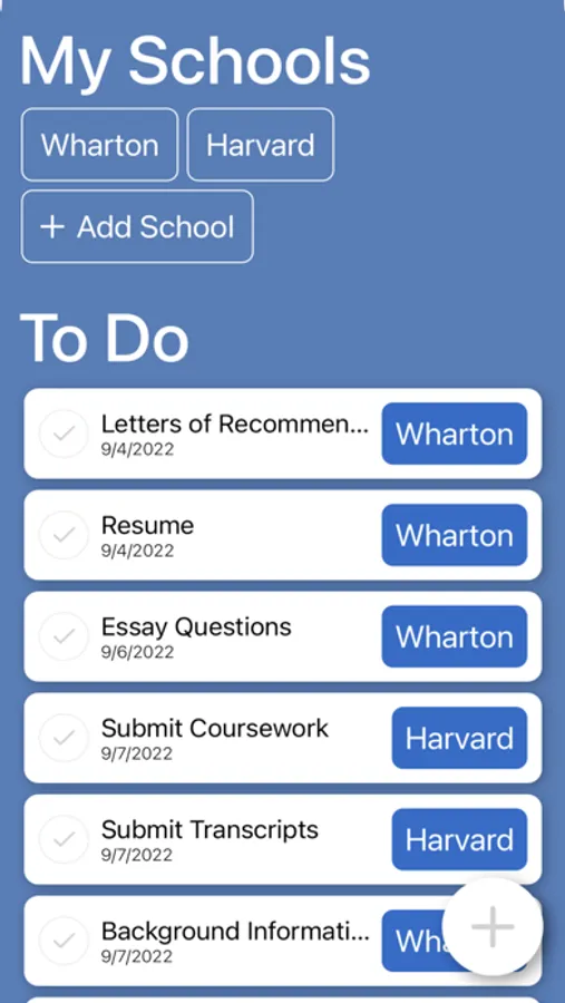 Hi, my name is Michael Selander I'm the creator of this app. I just applied to 5 MBA programs (Headed to Wharton soon!). I made this app because it's what I wish I had during my application process.