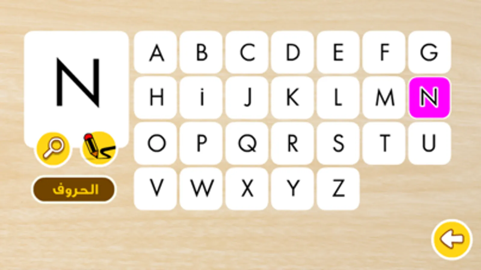 تعلم كتابة الحروف الكبيرة : يوفر التطبيق برنامج متكامل لتعلم كتابة الحروف الانجليزية الكبيرة حيث يمكن للمستعمل الكتابة مباشرة على الشاشة باستعمال يده او باستعمال قلم خاص بالشاشات اللوحية ، كما تعطي امكانية تغيير لون الخط ، سمك الخط ، تعلم طريقة و جهة الكتابة و مباشرة سماع نطق الحرف