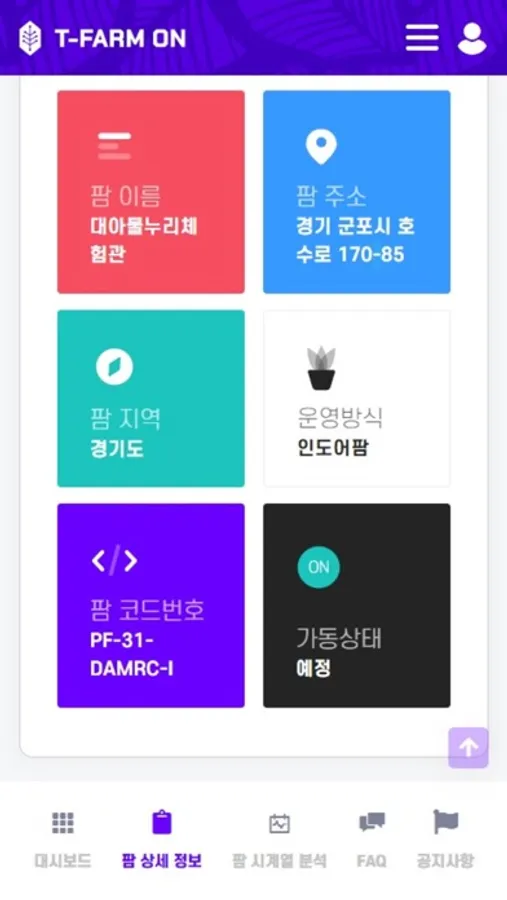 1. 인도어 수직농장의 정보를 한눈에 볼 수 있습니다.