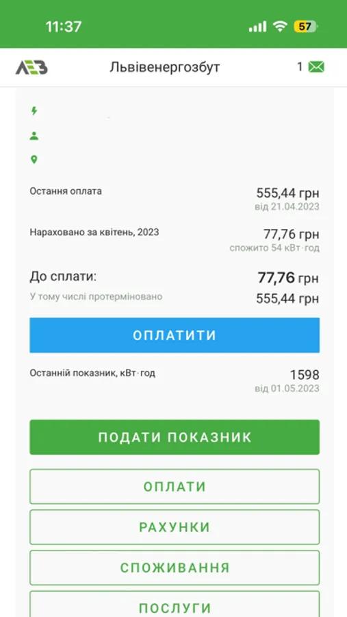 - відстежувати історію сплат та історію показів в архіві розрахунків та квитанцій.