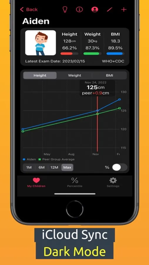 The measured history is clearly presented in intuitive charts and percentiles, making it easy to see children's growth trends.