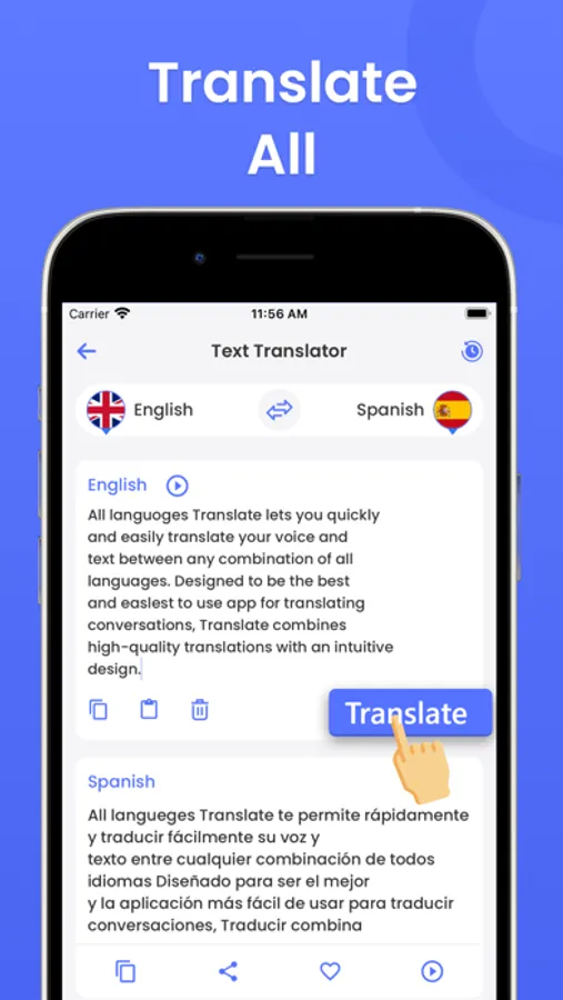 Translate all language – Voice text translator is so cool for language conversion and translation. A little words translator app offers world languages package. Free live text translator app is hall mark for speech and written content exchange. Universal language speech translator is signified for translation from English to Spanish, English to Hindi, English to French, Chinese to English, Arabic to Swedish, interpretation from Dutch to Chinese Simplified etc.