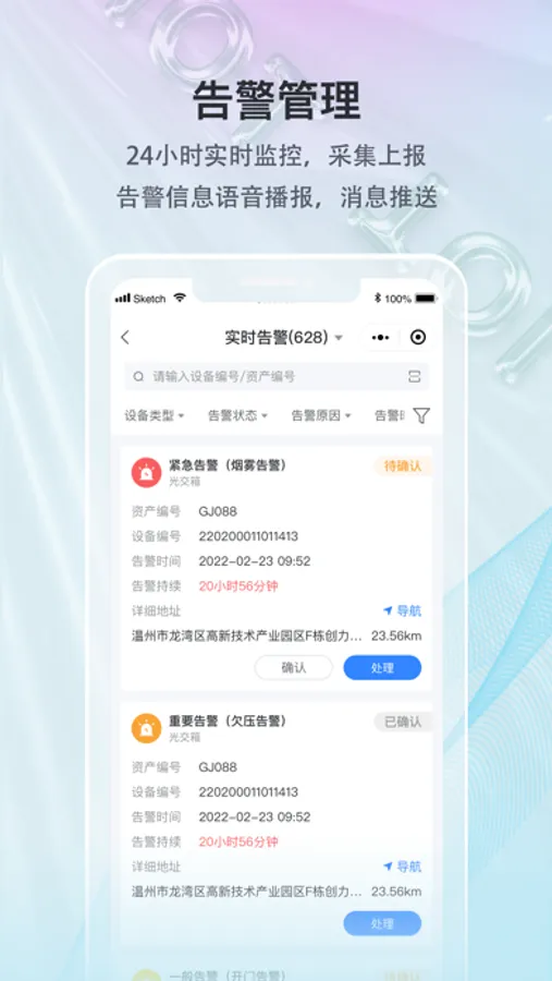 手机物联云基于现有的辅助决策等业务系统,以 GIS 地图为基础,通过相应业务指标体系的构建,基于地理信息平台以地图形式集中展现城市基础设施的预警态势分析、报警态势分析和综合决策分析等内容,辅助支撑领导决策,及时发现城市基础设施问题,提高精准治理水平。