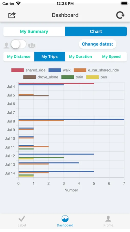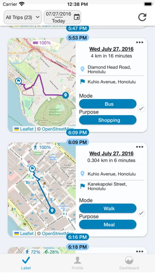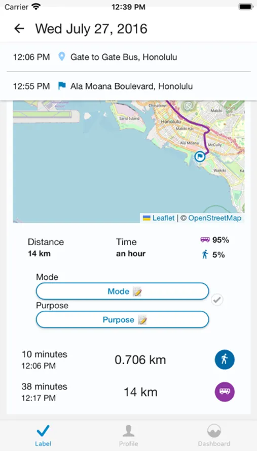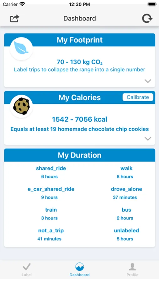 The app empowers communities to understand their travel mode choices and patterns, experiment with options to make them more sustainable, and evaluate the results. Such results can inform effective transportation policy and planning and be used to build more sustainable and accessible cities.