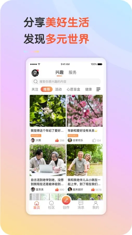 中老年乐友在这里分享生活日常,传递爱的温度。厨艺、花草、歌唱、书法、绘画、戏曲、舞蹈等话题,总有人与你志趣相投。亲情、友情、爱情、家国情,总有一段能唤起尘封的记忆。