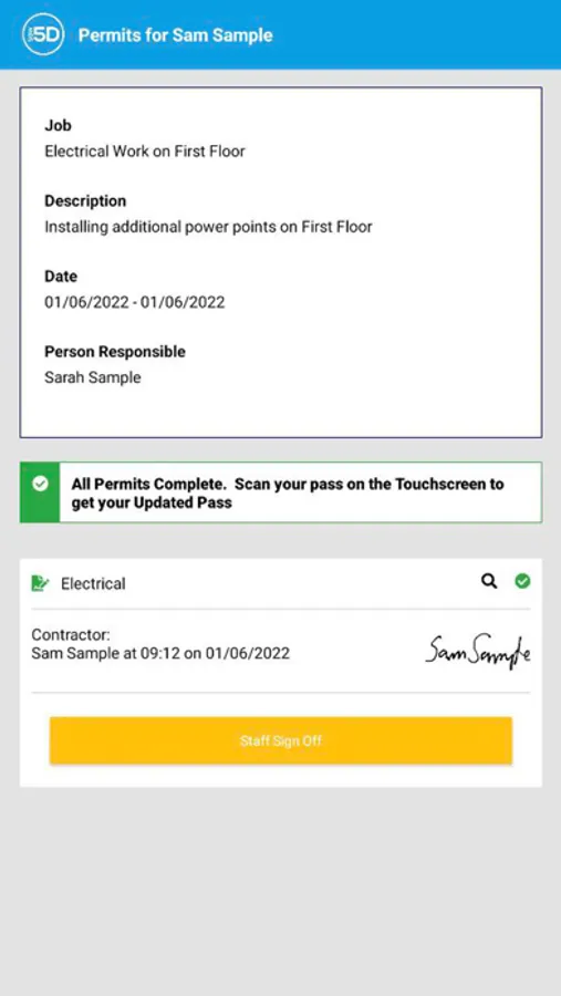 Allows Staff Members to Sign Off Permits for Jobs to take place