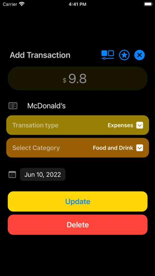 * Add income & expenses in one move.