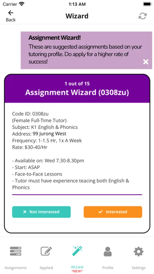 - Magically recommends you assignments based on your tutoring preferences.