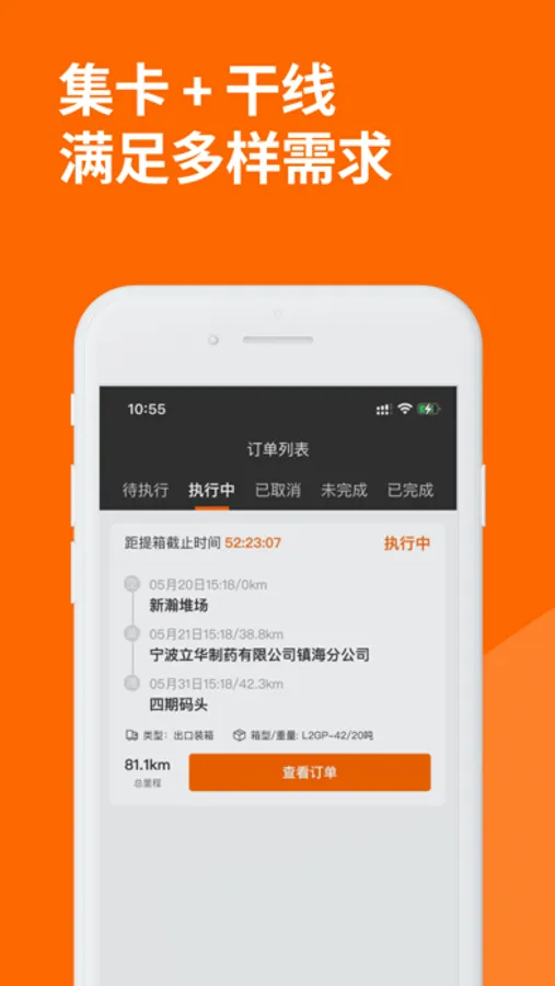 云柜宝司机端APP,包含订单抢单、路线引导、杂费核验等功能,辅助云柜宝系统个人司机及物流企业司机完成集卡订单,追溯订单记录