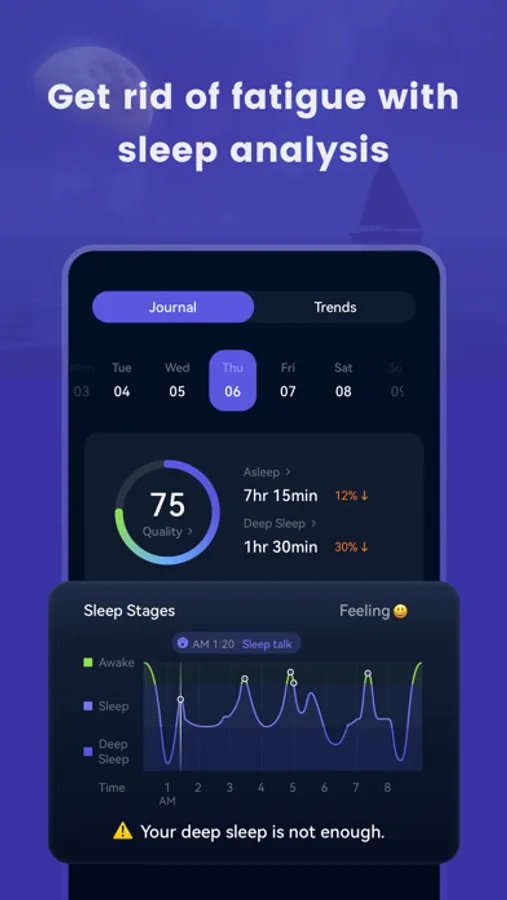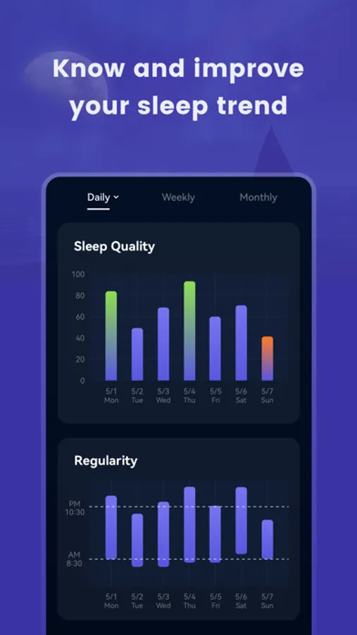 Get your long-term sleep trend and cultivate regular and healthy sleep habit.