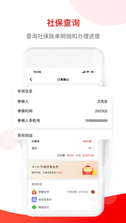 6.短信提醒:订单状态通过短信及时提醒,让缴社保更安心;