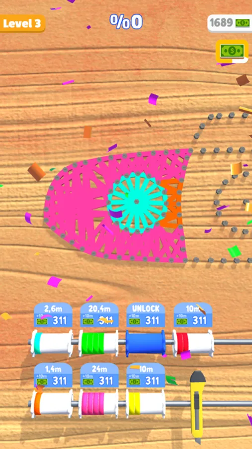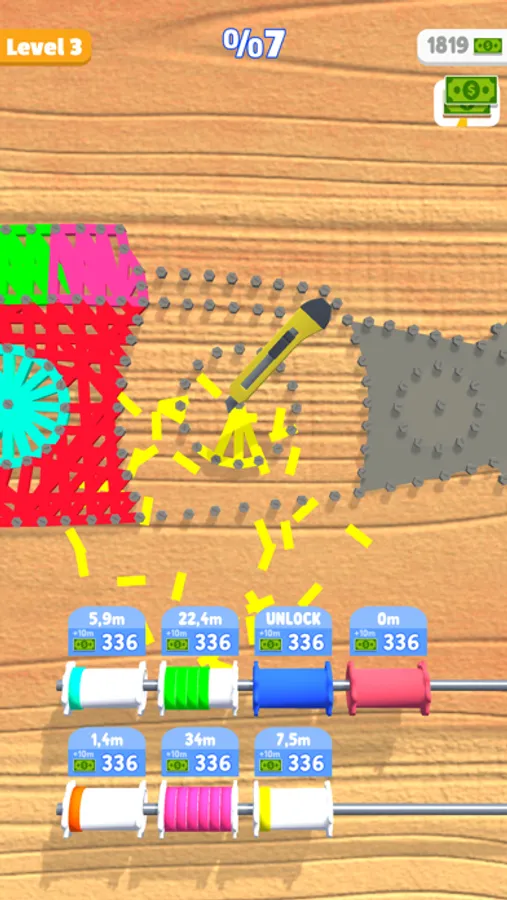 Create your knit art with your own colors! Upgrade and refill your colors for more fun!