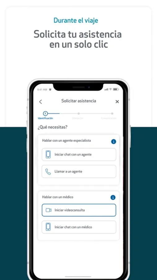 - Asistencia en viaje con telemedicina. Te evitamos los desplazamientos innecesarios a un centro médico gracias a la nueva función de videoconsulta. Además, recibirás las recetas e informes médicos que necesites en formato electrónico. También podrás solicitar asistencia 24 horas llamando desde la App o haciendo uso del chat integrado. Sea cual sea la modalidad de asistencia que utilices, evitarás barreras lingüísticas con una comunicación directa en español, estés donde estés, geolocalizaremos tu ubicación para gestionar el servicio de la forma más rápida y eficaz y haremos seguimiento de la gestión de asistencia en tiempo real, hasta que estés totalmente recuperado.