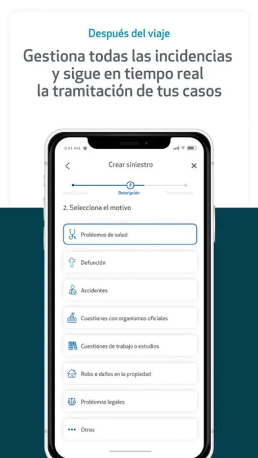- Después de viaje: comunica tu siniestro y sigue en tiempo real la resolución de cada caso.