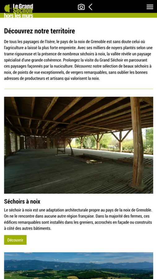 Pour prolonger la visite du musée et parcourir le pays de la noix, l'application mobile « Le Grand Séchoir hors les murs » vous guide à pied, à vélo ou en voiture pour découvrir à proximité de la vélo route V63 une sélection de noyeraies remarquables ou de beaux séchoirs à noix, des points de vue exceptionnels sur les paysages façonnés par la nuciculture, mais aussi les bonnes adresses de producteurs et artisans qui valorisent la noix.