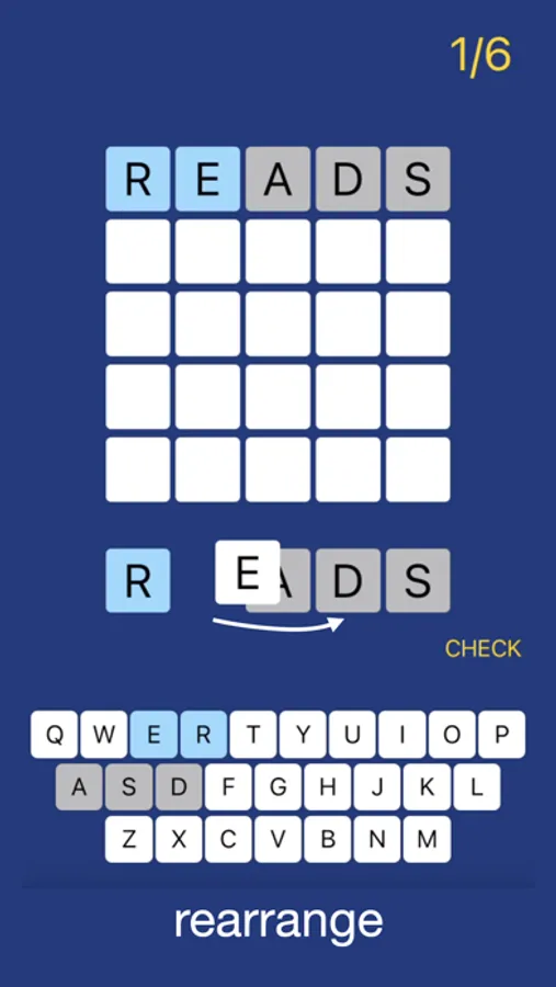Drag letters in, rearrange before committing and flick away the ones you don't want.