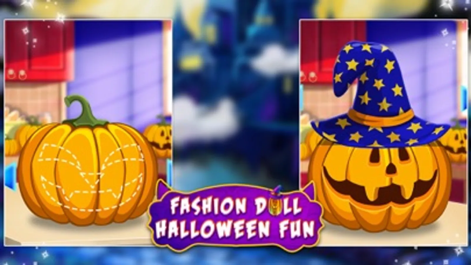 Create your own fairy Halloween Pumpkin Face by harvest magic pumpkin, renovate the house in halloween House decoration and cleanup, design halloween invitation card.