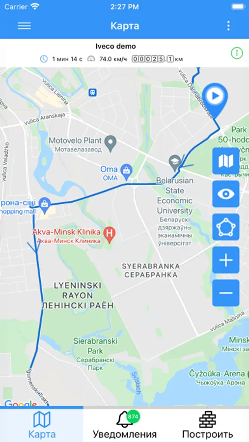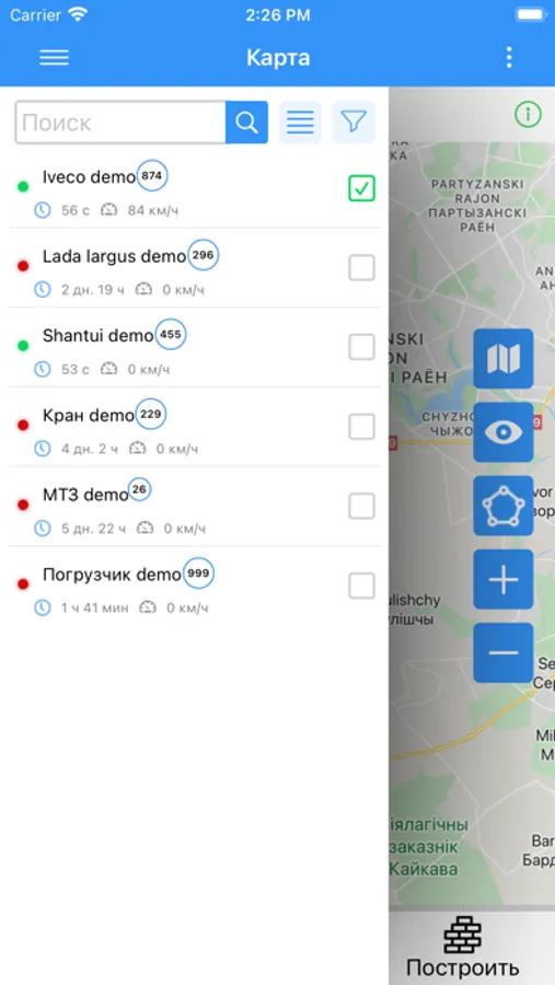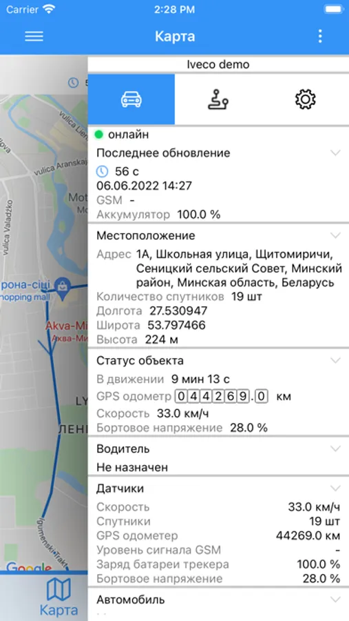 Мобильное приложение для доступа к системе спутникового мониторинга транспорта.
