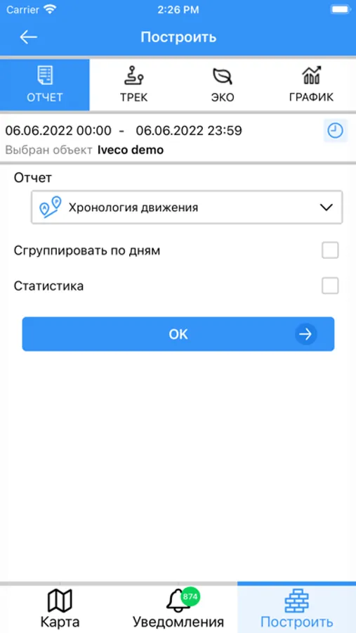 Позволяет в режиме реального времени следить за вашим транспортом, строить отчеты, графики, бороться со сливами топлива.