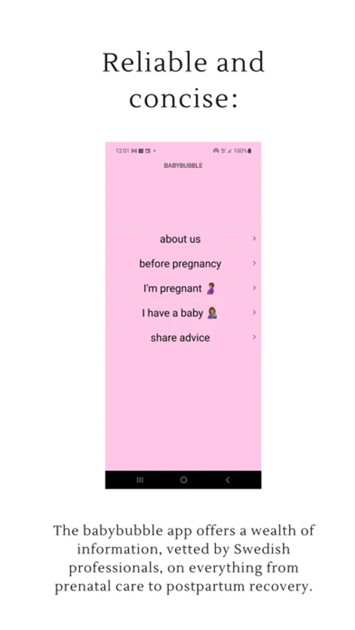 We provide accurate and reliable information about pregnancy, childbirth and motherhood, all vetted by Swedish professionals.