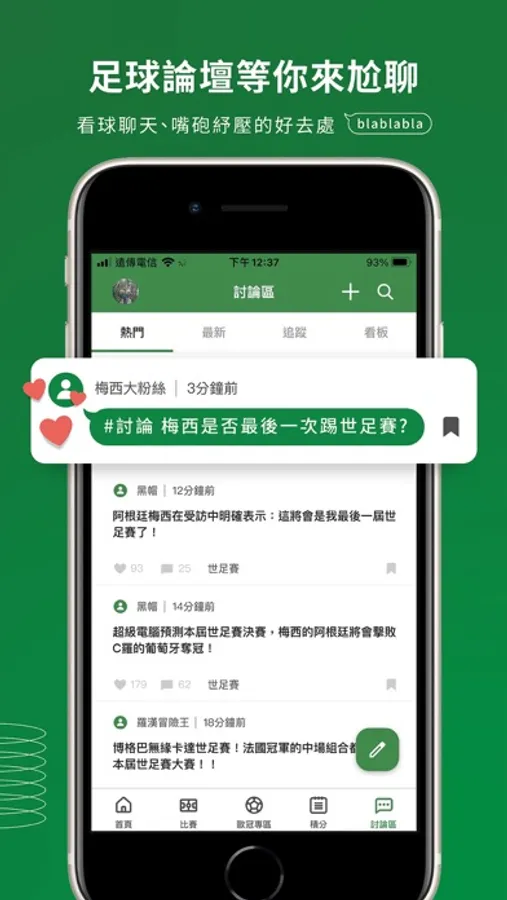 而足球論壇讓你可以在各大看板發文分享你的觀點,在觀看比賽的同時也能與網友互動留言聊天。