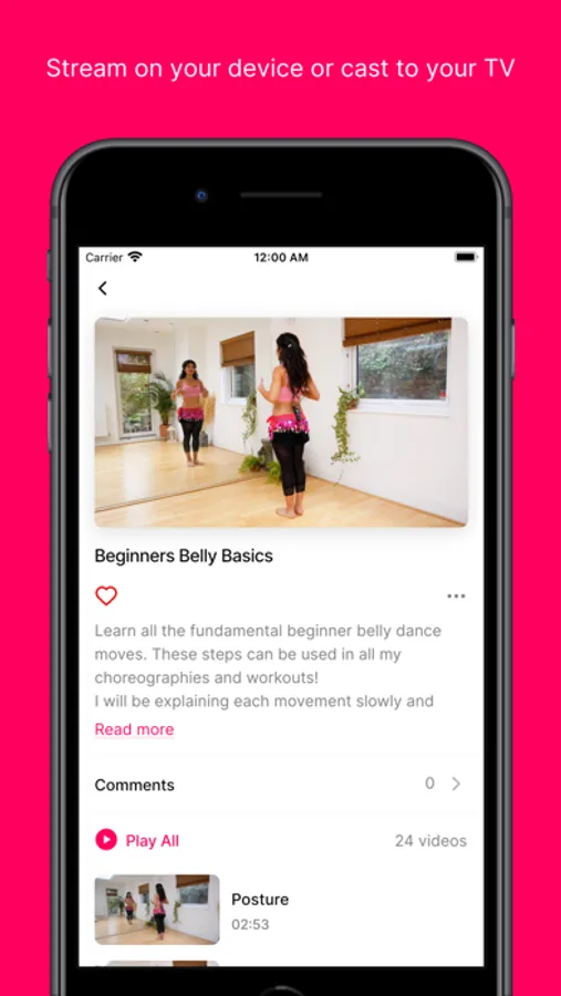 Find a full break down of every belly dance move in Leilah's Belly Basics, and enjoy BellyFit By Leilah workouts at different lengths to fit around your day. Stand out from the crowd and learn beautiful belly dance choreographies or choose to unwind with a guided stretch class.
