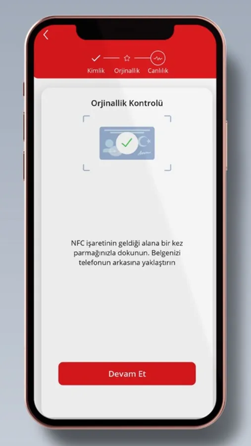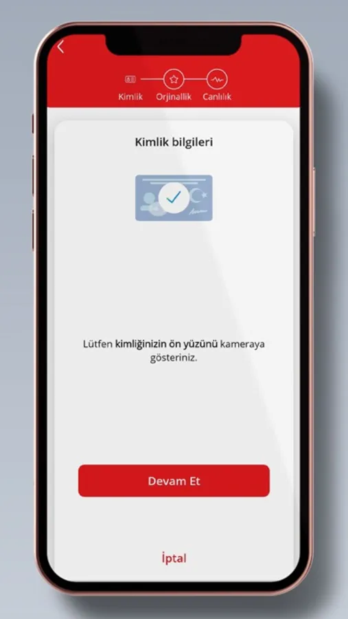 Yeni tip kimlik kartınızı veya pasaportunuzu kullanarak, kimlik bilgilerinizi onaylatıp hesap açılış işlemlerinizi başlatabilirsiniz.