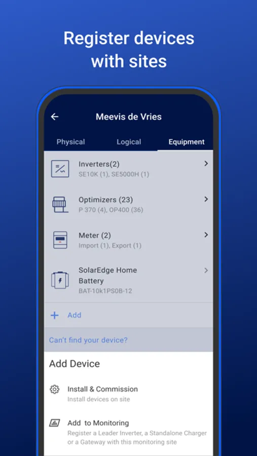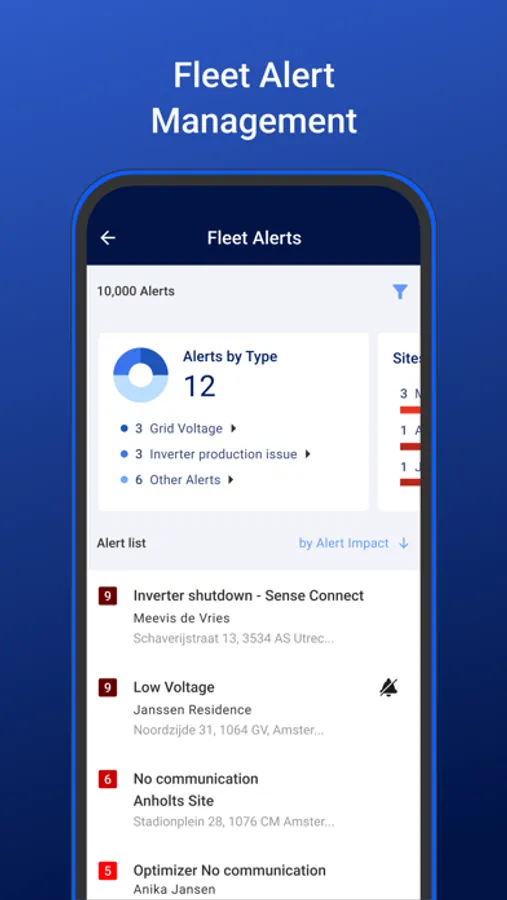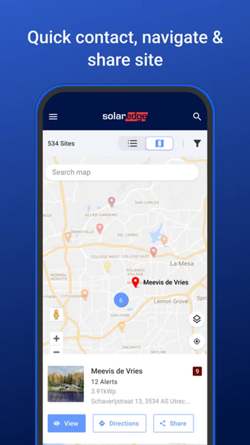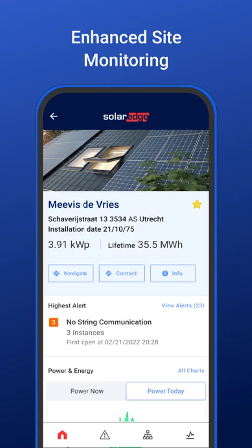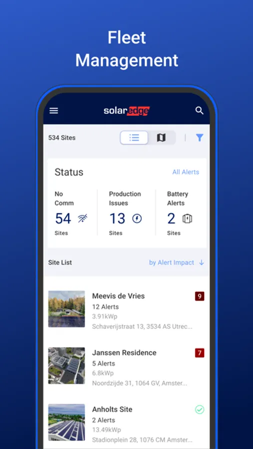 Monitor and manage your fleet, create and edit sites, manage site users and equipment, and troubleshoot alerts all from SolarEdge Go wherever you are.