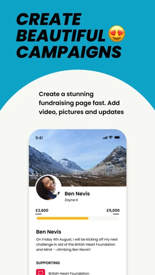• CREATE FUNDRAISING CAMPAIGNS ON YOUR MOBILE: Build beautiful and impactful fundraising campaigns fast. Add pictures, videos and updates to tell your story and boost your impact