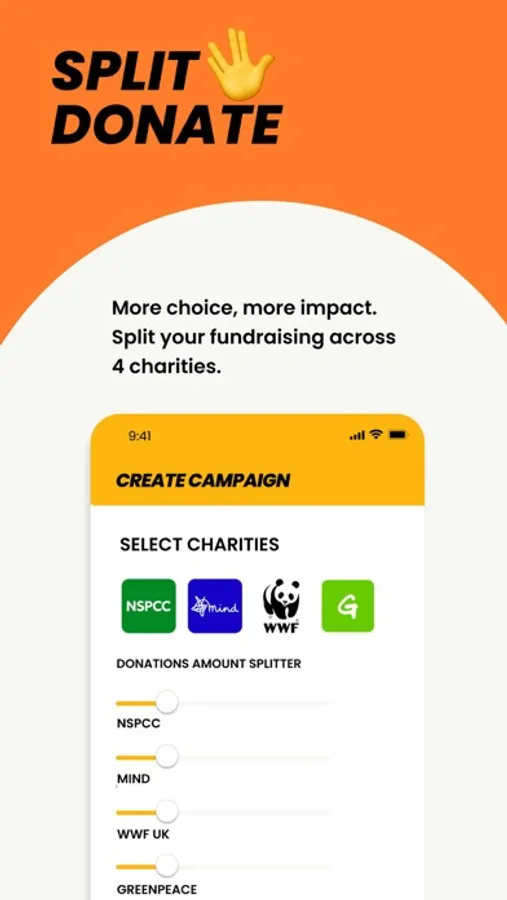 • SPLIT DONATIONS: Split your fundraising across up to four charities with Split Donate. More choice, more impact