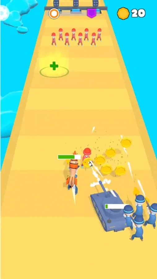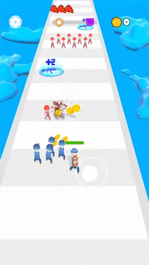 As you defeat each enemy you gain coins that help you get closer to the enemy fort and get new upgraded weapons that make you the top player!