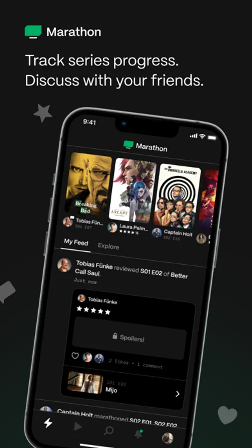 Marathon is centered around user activity, with your friends front and center on your homescreen. See what your friends have reviewed, are watching, or new lists they've put together.