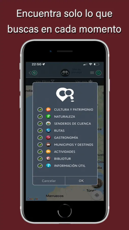 Descarga nuestra aplicación y comienza a disfrutar de las mejores recomendaciones del entorno de manera cómoda y simple en tu móvil, con la particularidad de ¡no necesitar conexión de Internet!.