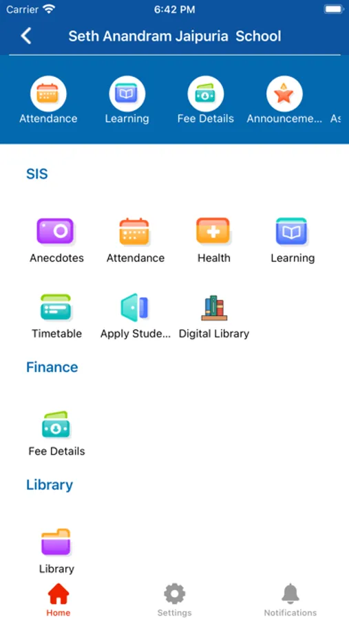 Seth Anandram Jaipuria School provides communication app for parents using which they can download school announcements, Class assignments, Events.