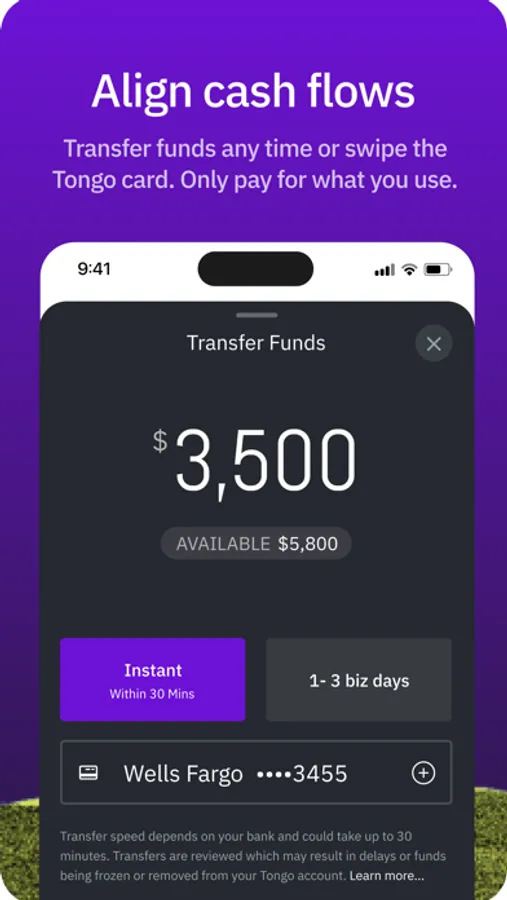 Tongo enables real estate agents to turn future cash flow into a line of credit. Limits are based on your pending commissions. Upload multiple transactions simultaneously to build a higher limit. Access your approved limit as needed by either transferring funds to a linked bank account or by swiping the Tongo card. Use as much you want or none at all. It costs just 3% per 30 days and fees are only charged on the amount used.