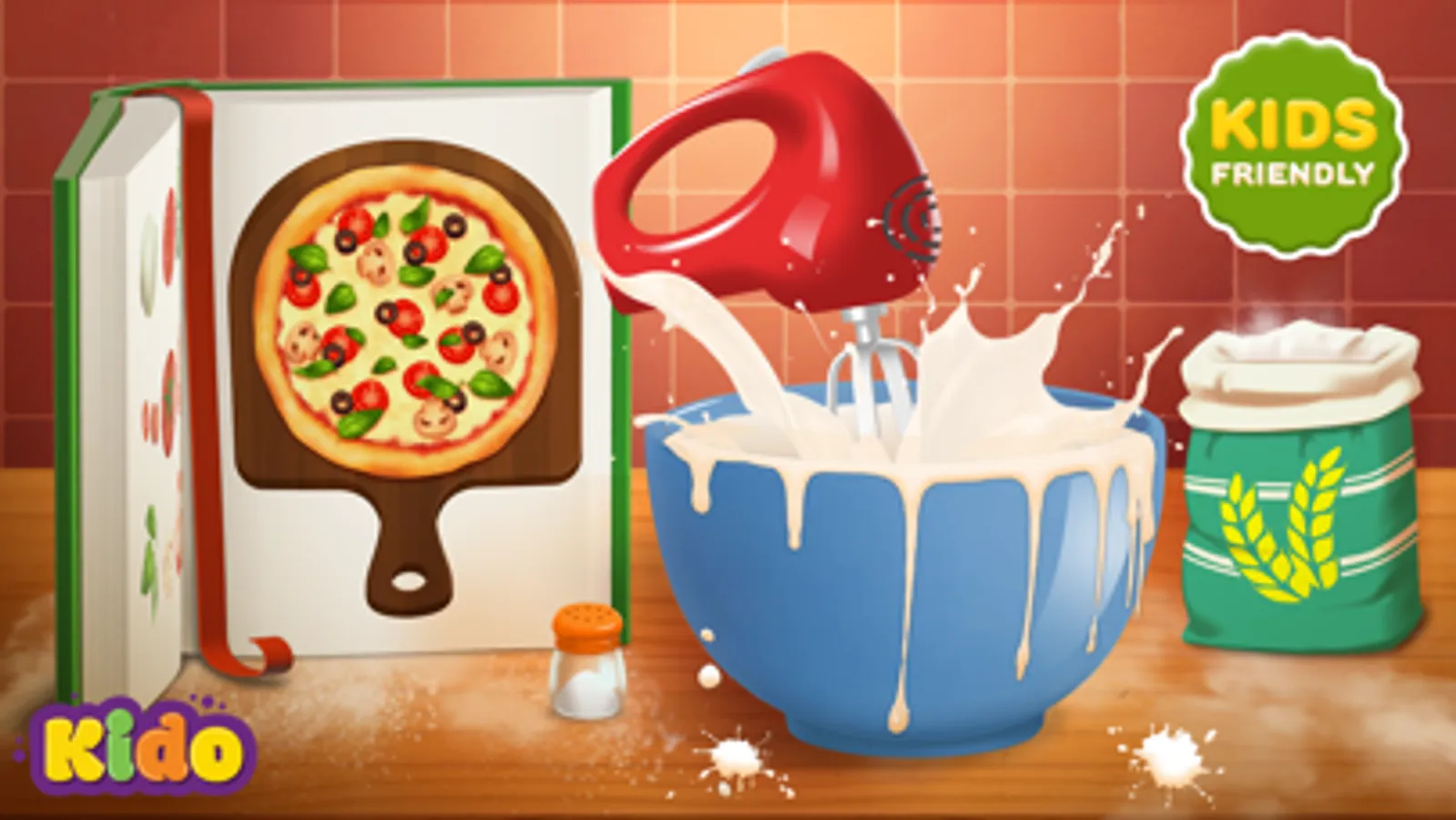 Kids, in this pizzeria game you will be a pizzaiolo, cook, stir, chop, make and bake your favorite Pizza from scratch, we promise you all the fun of making a real one but without the mess it creates in the kitchen. Cooking Games are a real solution!