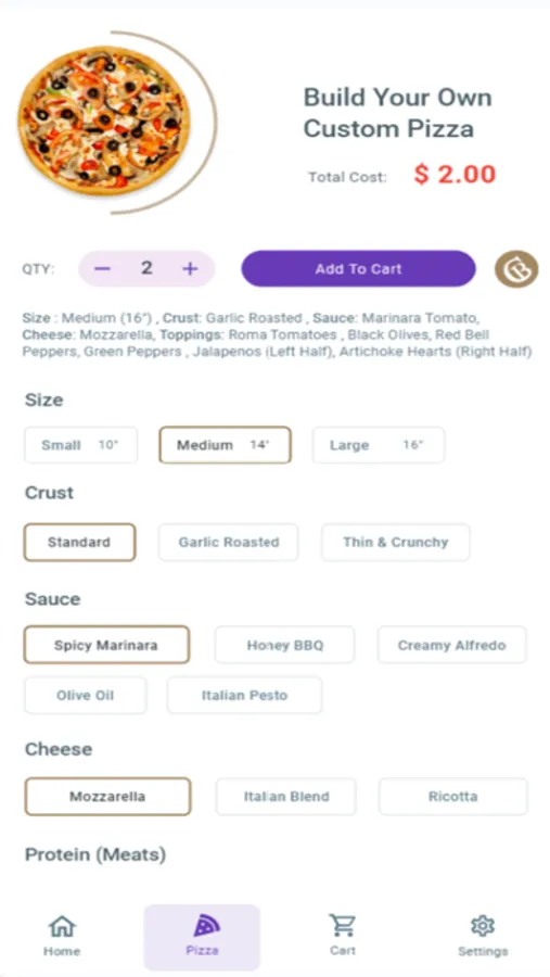 • Order a personal size (10-inch) pizza from a list of preselected offerings or customize your own