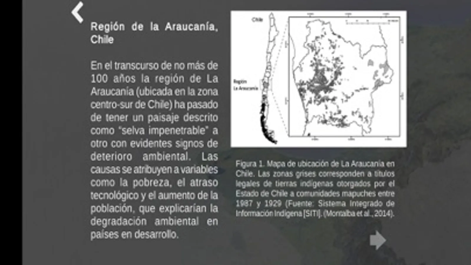 El Mapa Interactivo del Cambio Climático (MICA) de la Región de La Araucanía ofrece la oportunidad para la construcción de saberes científicos desde una perspectiva integrada y comprender algunos alcances, limitaciones e implicancias de la ciencia y la tecnología en la sociedad. La perspectiva de MICA permite visibilizar los diversos procesos que relacionan el conocimiento científico y tecnológico con la construcción de la sociedad, y viceversa, permitiendo involucrarse con pensamiento crítico en la vida cotidiana y contribuir al ejercicio de una ciudadanía participativa y consciente. Comunicar educativamente el conocimiento científico y desarrollo tecnológico en el marco del Cambio Climático es fundamental para el bienestar futuro de la sociedad, pues las adaptaciones, mitigaciones en este ámbito permitirán avanzar en medidas apropiadas de conservación y protección del ambiente de la Región de La Araucanía.