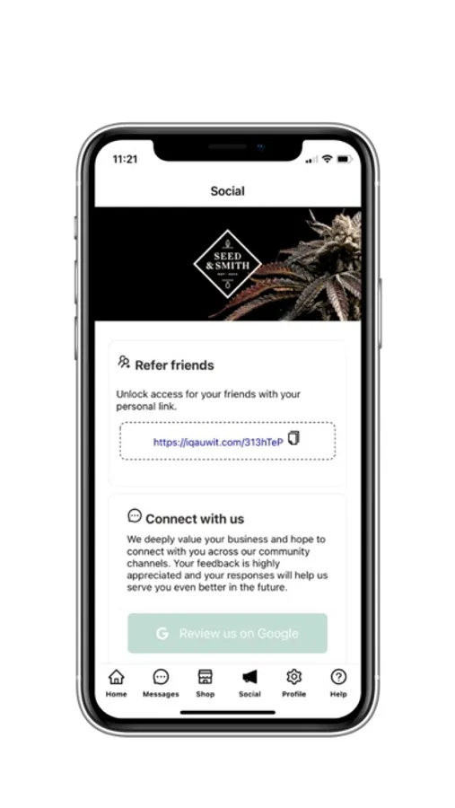 Check out our "Social" page to visit and review us on Facebook, Instagram, Google, Twitter, Weedmaps, and Leafly!