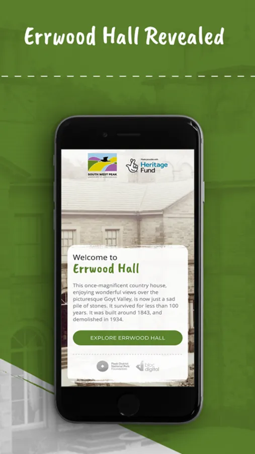 Rebuilding past: at the touch of a button see the impressive Errwood Hall appear before your eyes! Explore in 3D model and AR mode.