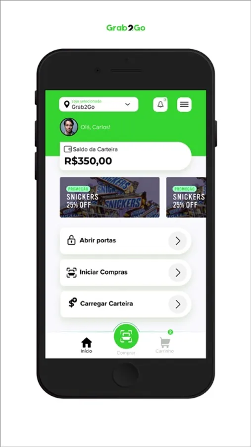 Com o aplicativo Grab2Go vai ser muito mais fácil fazer compras. Com ele você irá ter acesso às nossas lojas simplesmente scaneando o QR code na porta de entrada através do seu celular. Para comprar basta apontar a câmera do seu smartphone para o código de barras do produto desejado, confirmar o seu carrinho virtual e fazer o pagamento pelo próprio aplicativo. Você pode comprar na loja, no modelo scan&go, ou seja, bipar através da câmera do seu celular e levar na hora, sem ter que passar pelo caixa; pode ainda comprar na loja e passar pelo terminal de autoatendimento; ou, ainda, comprar direto de casa, pesquisando ou bipando os produtos da sua dispensa ou geladeira que deseja recomprar com a gente. Depois é só buscar em nossa loja. Viva a melhor experiência de compra com o app Grab2Go.