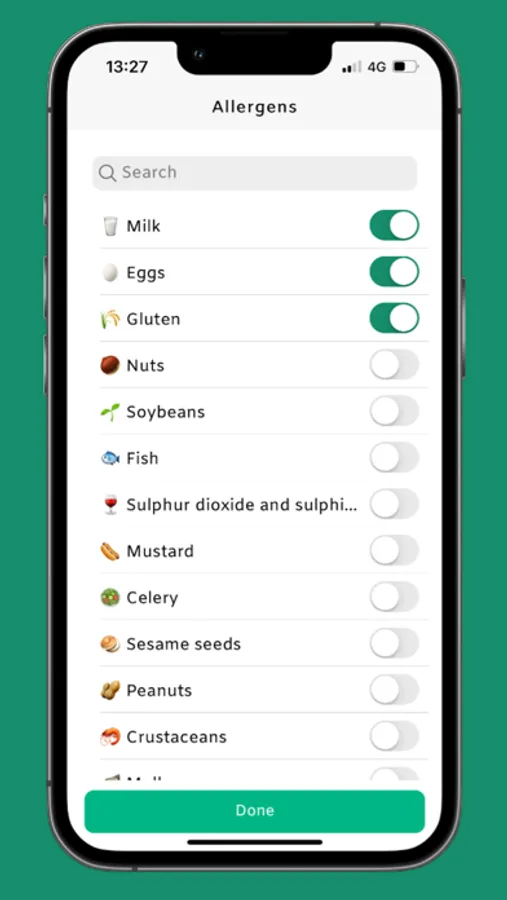 - Display the result with a different colour depending on the allergens you want to detect (you can select up to 13 allergens)