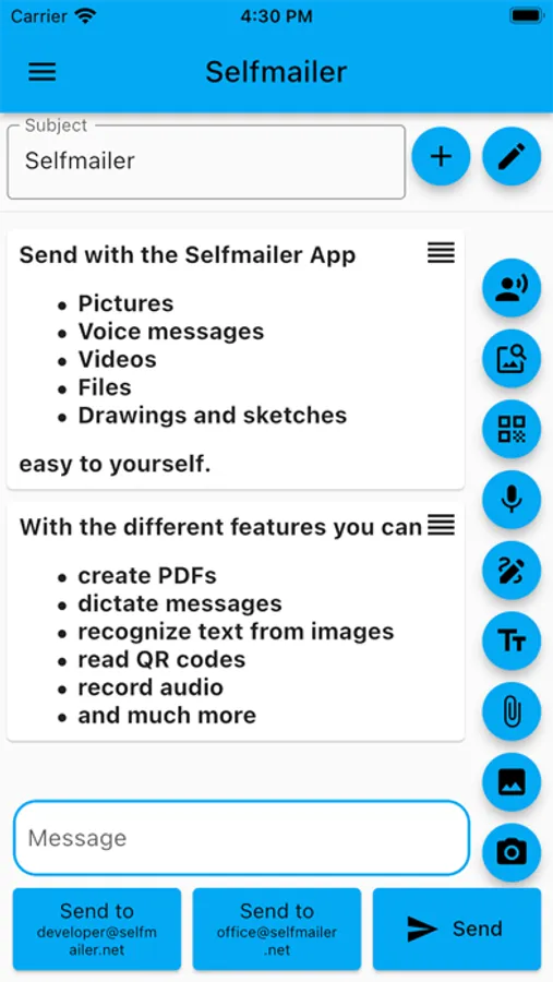 - Open the Selfmailer app