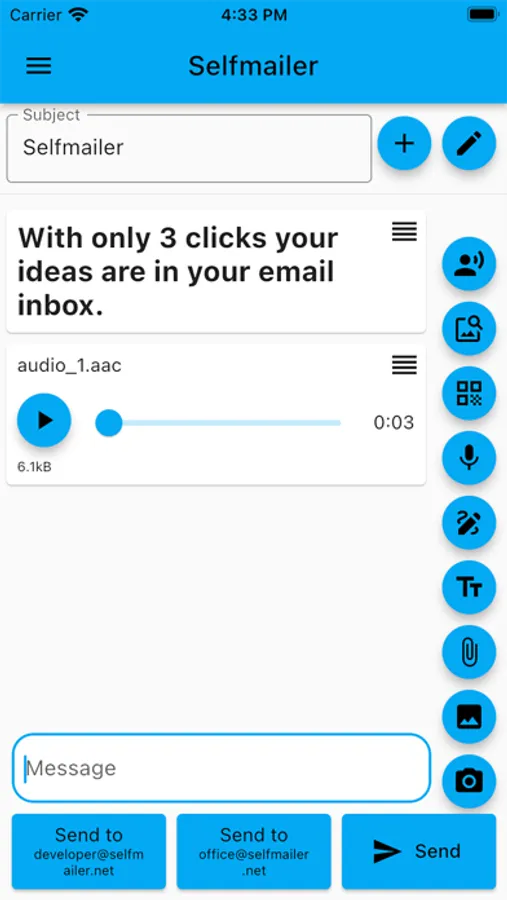 With just 3 clicks, your ideas will end up in your email inbox!