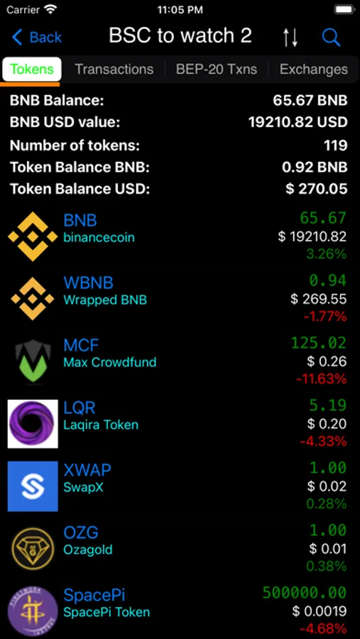 Detailed information on all your BEP20-based tokens and all transaction data.